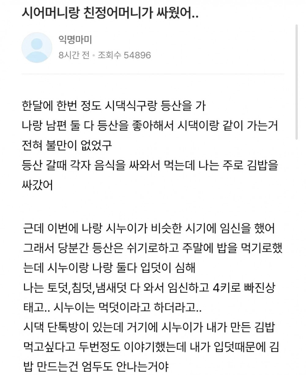 시어머니랑 친정어머니가 싸웠어